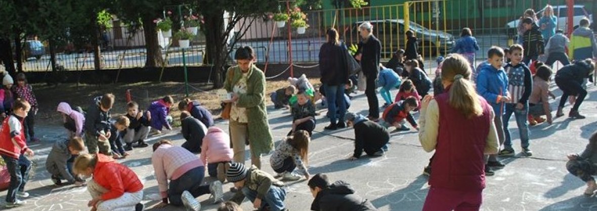 Da sivi betoni živnu u duginim bojama, pobrinuli su se učenici od 1. do 4. razreda, koji su maštovitim "asfaltiranjem" učinili da naša škola bude još lepša.